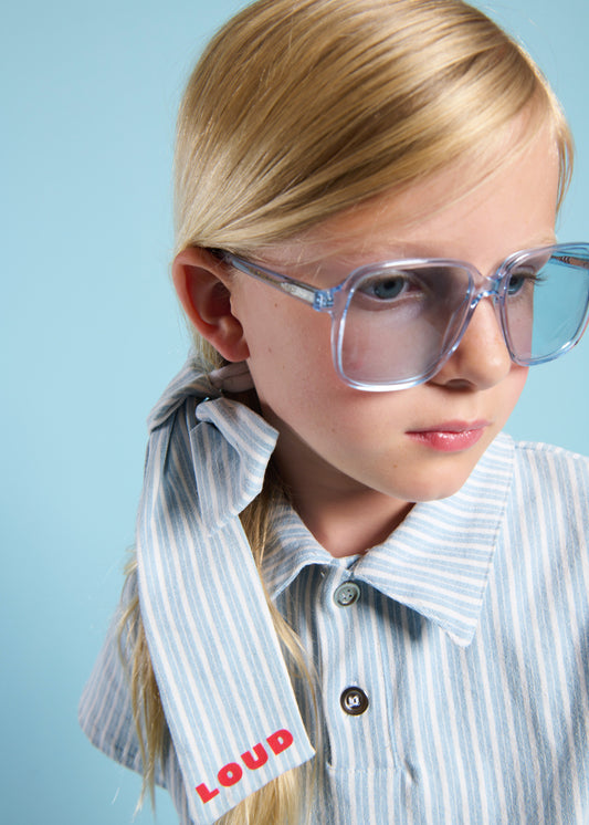 AUGUSTA - Mid Blue Stripe Dress Relaxed Fit Drop Shoulder
