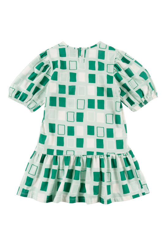 FLAVOR - Abstract Check AOP Dress Loose Fit 3/4 Sleeve Ruffle Hem