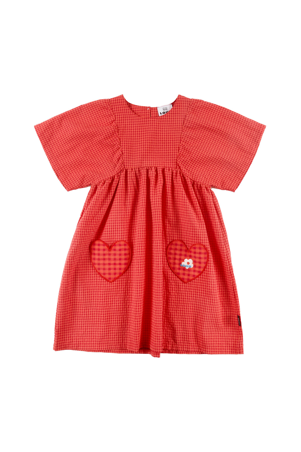 BREEZE - Red Check Dress Loose Fit Front Pockets