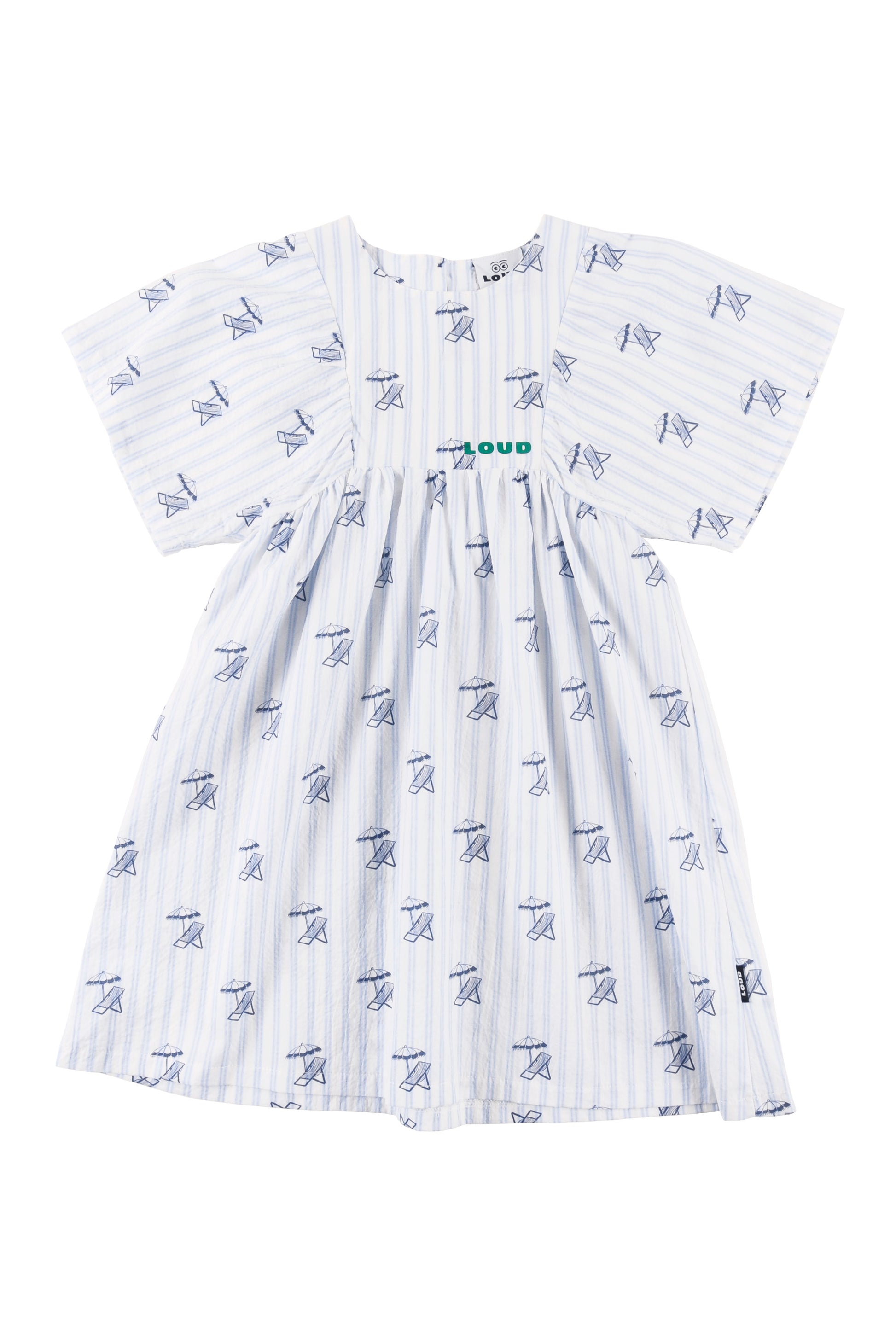 Embrace seaside vibes with the OMBRELLO Deckchair AOP Dress. This loose-fit silhouette celebrates retro beach aesthetics through an all-over print inspired by classic deckchair patterns. Perfect for those who love nostalgic charm with a contemporary twist, it's ideal for summer adventures, casual outings, or anyone wanting to make a colourful statement. Comfortable, effortless, and undeniably fun.